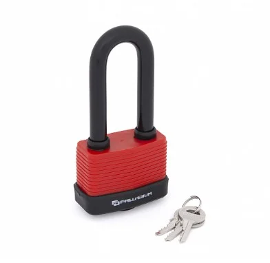 Всепогодный навесной замок 73 x 53 мм. Защищен от контакта с влагой по всей площади – достойный кандидат на роль уличного замка, призванного служить и в дождь, и в снег. Имеет удлиненную дужку – специально под широко расставленные или высоко приваренные проушины.