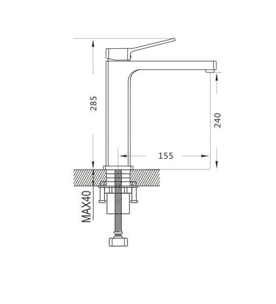 Монтаж смесителя осуществляется вертикально, что позволяет сохранить пространство под раковиной и облегчает процесс установки. Высота излива составляет 240 мм, а длина излива – 155 мм, что обеспечивает удобство использования и позволяет комфортно мыть руки или умываться.