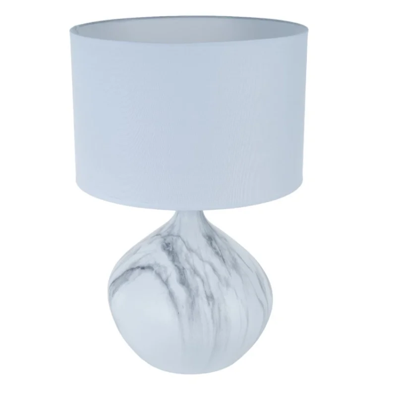 Настольная лампа G32169/1T MR WT от бренда Gerhort. Каркас выполнен из материала керамика, цвет мраморный. Плафон (светорассеиватель) выполнен из материала текстиль, цвет белый. Цоколь E27 рассчитан на лампы максимальной мощности до 40 Вт, а максимальная площадь освещения составит до 2 м².