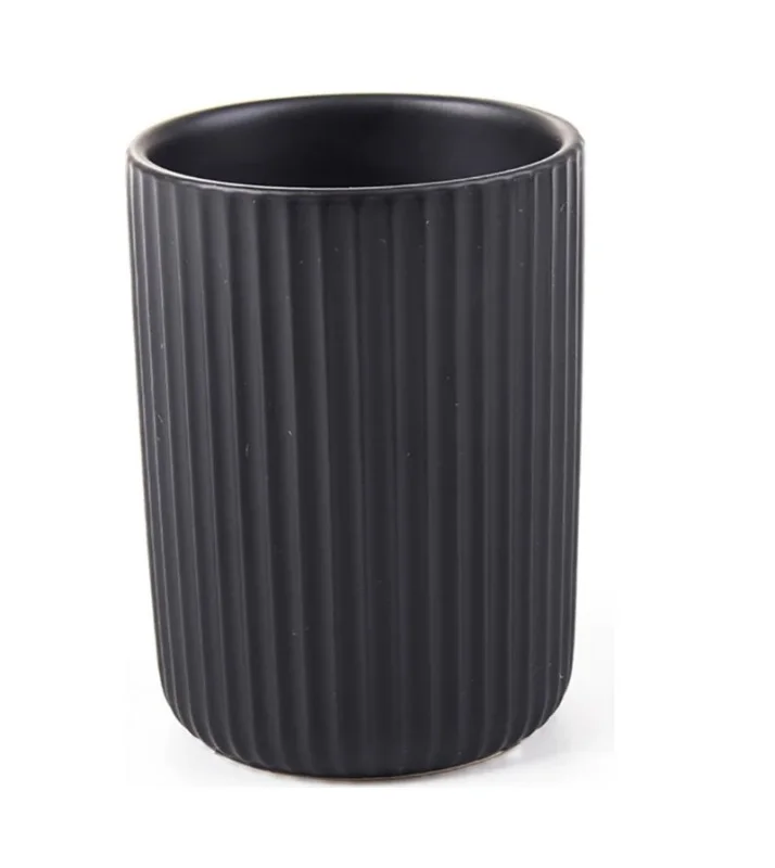 Стакан настольный Плиссе предназначен для хранения зубных щёток, а так же других предметов гигиены (бритвенные станки, кисточки) и зубной пасты. Имеет цилиндрическую форму с ребристой поверхностью. Влагоустойчив.