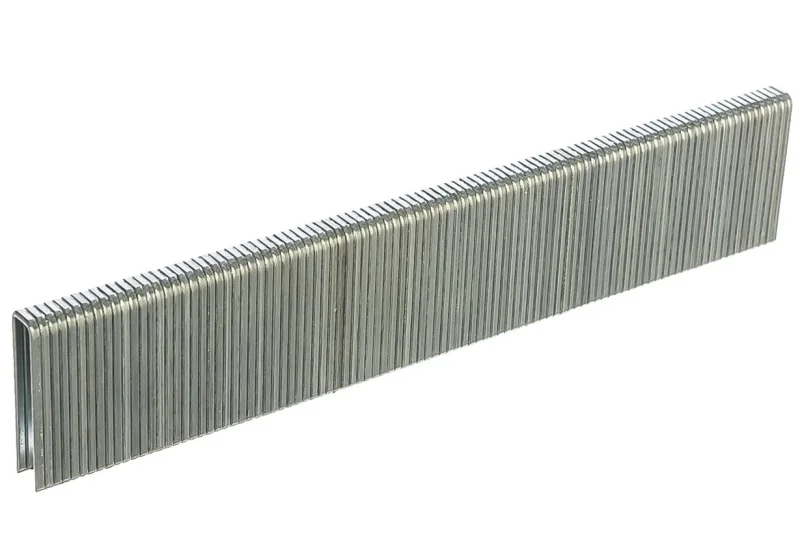 Скобы Matrix 57659 типа 18GA, 5000 шт. в упаковке, устанавливаются в пневматический степлер, совместимый с крепежами сечением 1,25 х 1,0 мм, шириной 5,7 и длиной 25 мм. Они служат для установки кровельных покрытий, настила и обшивки стен.