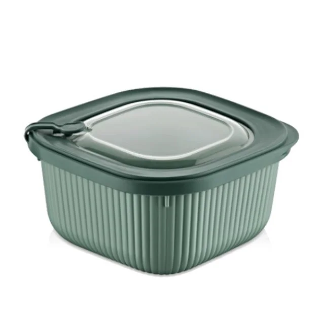 Контейнер оснащён плотно закрывающейся крышкой с клапаном, который обеспечивает несколько режимов использования. При закрытом клапане продукты можно хранить при комнатной температуре, в холодильнике или морозильной камере. При открытом клапане контейнер можно использовать для разогрева пищи в микроволновке, не снимая крышку, что предотвращает высыхание и разбрызгивание продуктов.