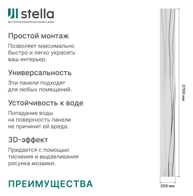 Панель ПВХ Stella коллекции Premium - это премиальное глянцевое покрытие и целых 32 ребра жесткости.