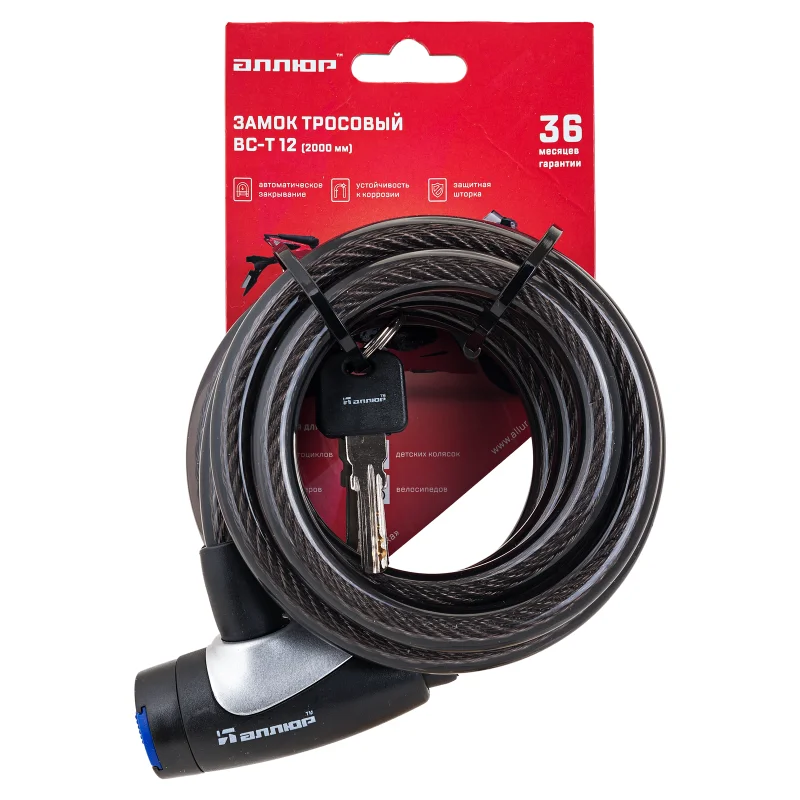 Замок навесной с тросом. Материал корпуса - сталь покрыта пластиком. Стальной трос в пластиковой оплетке (12мм - диаметр, 2000мм - длина). Цилиндровый механизм секрета, в комплекте 3 перфоключа. Защитная шторка на скважине препятствует попаданию в механизм грязи и влаги. Предназначен для запирания дверей, ворот, а также для предотвращения хищения велосипедов, детских колясок, санок, лодочных моторов и др. предметов.
