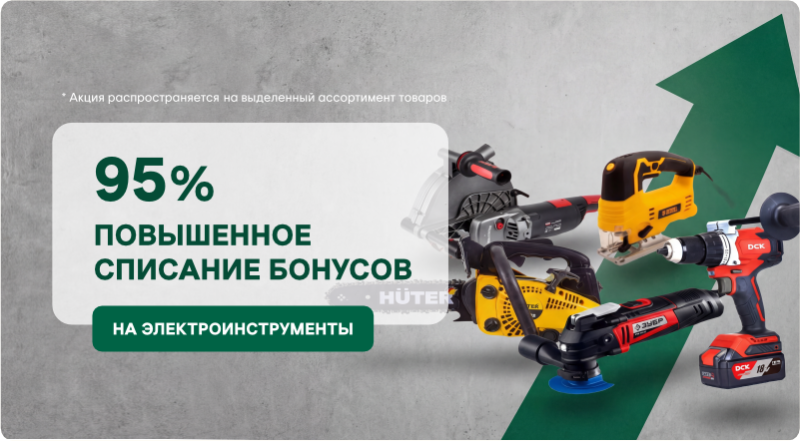 Повышенное списание бонусов на Электроинструменты 95% в гипермаркете и на сайте.