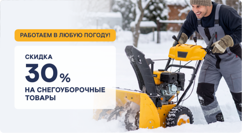 Пока капризы природы продолжаются, мы предлагаем встретить их во всеоружии. Снегоуборочный инвентарь со скидкой –30% — это отличная возможность подготовиться к снегопадам и оттепелям по выгодной цене.