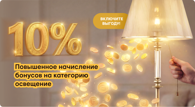 С 16 марта по 31 марта действует специальная акция: при покупке товаров из категории «Освещение» вам будет начислено 10% бонусов от суммы покупки.