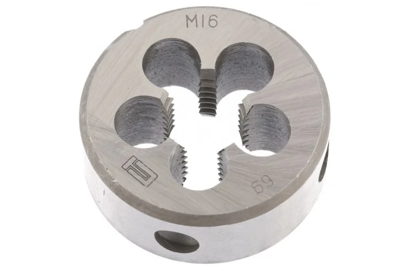 Плашка М16x2,0 мм СИБРТЕХ 77044 имеет 5 режущих зон с глубокими отверстиями для отвода стружки. Инструмент разработан для ручного нарезания наружной резьбы и обеспечивает точное и ровное ведение по стержню.