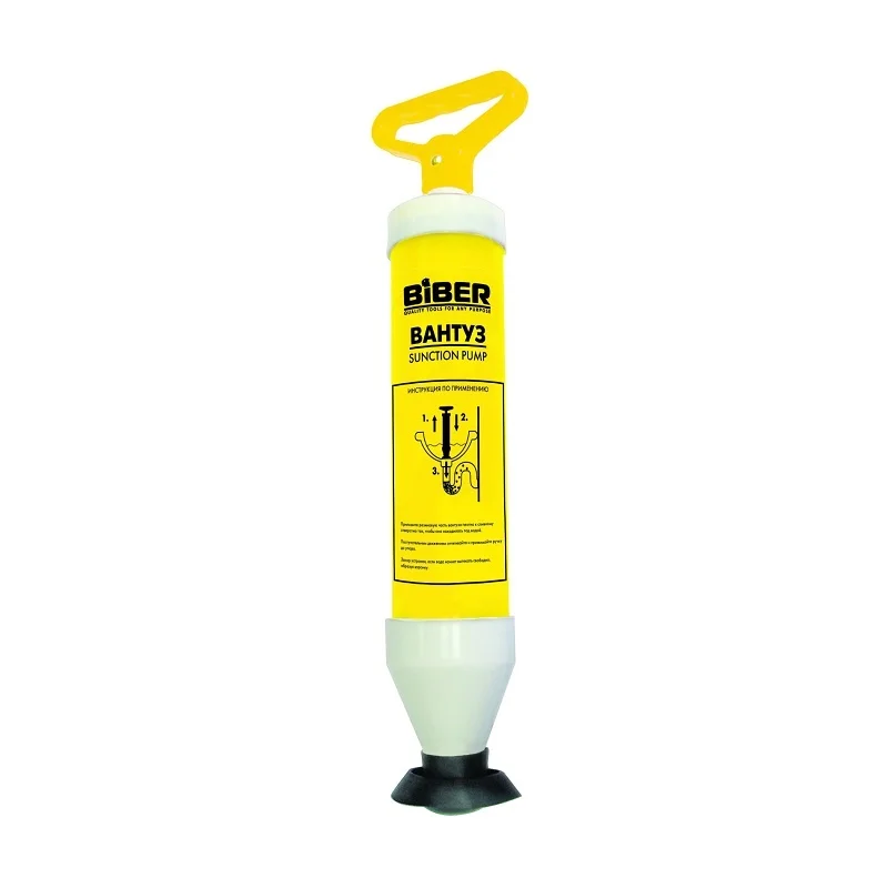Вантуз Biber 90251 - удобный механизм для прочистки труб от засоров. Резиновая накладка обеспечивает герметичность, а емкость вбирает в себя содержимое труб, исключая загрязнение области работы. Y-образная рукоятка делает прочистку более простой.