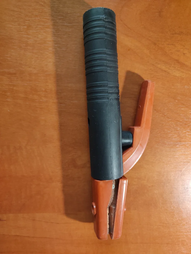 Держатель электродов позволяет контролировать и удерживать положение электрода. Он рассчитан на работу при силе тока до 500 А со сварочными аппаратами любых торговых марок. Способен удерживать большие электроды диаметром до 10 мм.