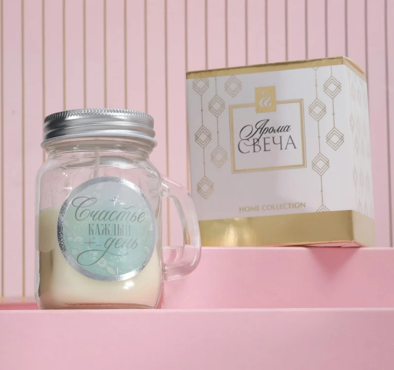 Свеча в банке «Счастье каждый день», 7,3 х 8 х 5 см