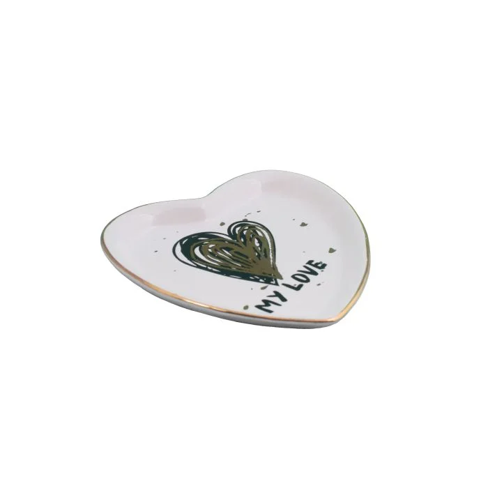 Декоративная тарелочка для мелочей Сердечко из фаянса (доломитовая керамика) / 8,3x8,3x1,4см арт.79327