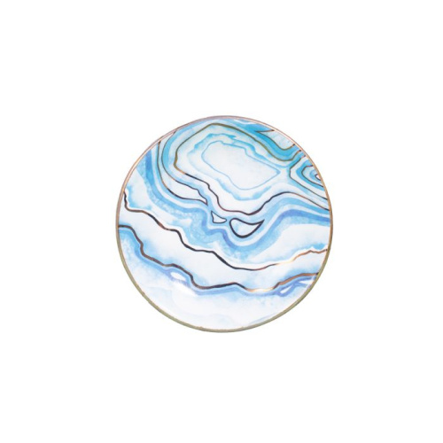 Декоративная тарелочка для мелочей Синие разводы из фаянса (доломитовая керамика) / 9x9x2см арт.79319