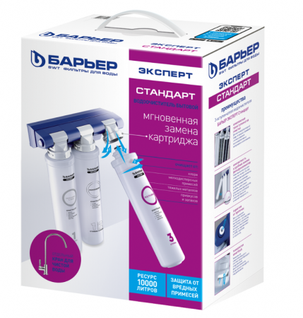 Водоочиститель Барьер "Expert Standard" Н211Р06 представляет собой передовое решение для обеспечения чистой и безопасной питьевой воды в домашних условиях. В отличие от традиционных фильтров, он сочетает в себе высокоэффективные многослойные фильтрующие элементы и интеллектуальную систему контроля качества воды.