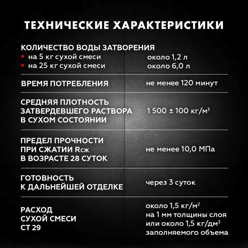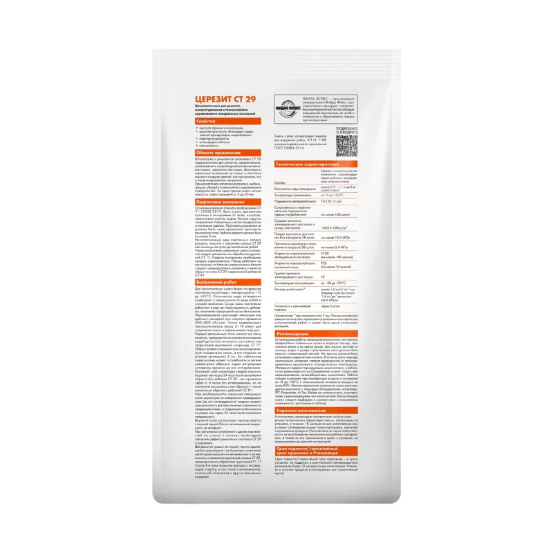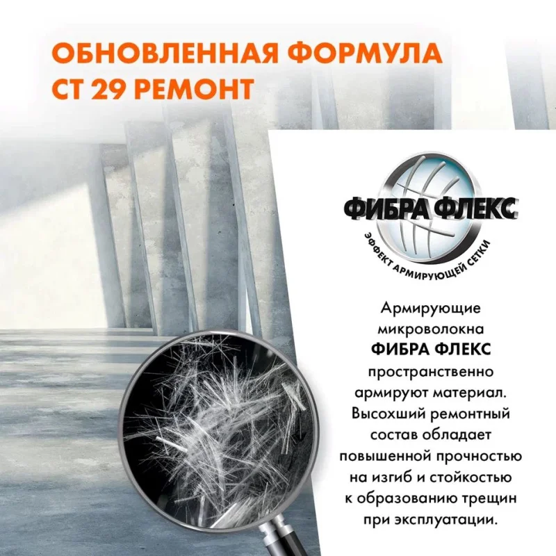 Состав CT 29 цемент, минеральные заполнители, модифицирующие добавки, армирующие микроволокна
