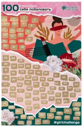 Мотивационный постер со скретч-слоем «100 способов себя побаловать» – возможно это именно то, что поможет вам осуществить ваши планы и мечты. Стирая скретч-слой, вы получаете задание – некоторые из них могут быть выполнены быстро, а некоторые могут стать отличными целями на годы вперед. Все эти задания объединяет одно – исполняя их, вы определенно будете становиться счастливее, постепенно превращаясь в улучшенную версию самих себя.