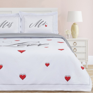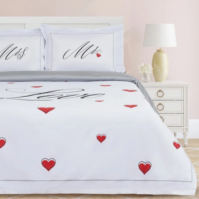 Постельное белье Этель "Mr & Mrs" двуспальное — это стильное признание в любви и безупречное качество для уютных ночей. Изготовлено из 100% хлопка мако-сатин (плотность 128 г/м²), оно обладает мягкой, шелковистой текстурой, прекрасно пропускает воздух и обеспечивает комфорт в любое время года. Дизайн с надписями "Mr & Mrs" делает комплект отличным выбором для пары или подарка на особый случай.