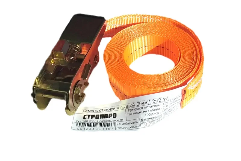 Кольцевой стяжной ремень СТРОП-ПРО 25мм, 1.2т, 5м, оранжевый служит для фиксации груза при транспортировке. Специальное зажимное устройство обеспечивает надежность крепления. Ремень изготовлен из высококачественного материала, что гарантирует устойчивость к износу. Стяжная лента не портится под воздействием химических веществ и технических масел.