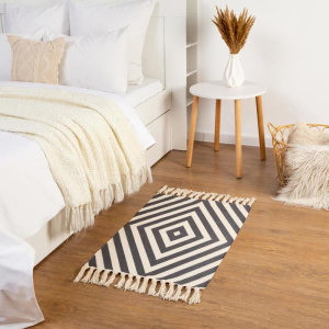 Коврик можно использовать в прихожей или положить его у кровати. Вас удивит мягкая и нежная текстура ворса и приятная расцветка, которая подойдёт под любой дизайн. Этот стильный элемент интерьера не только добавит уют в ваш дом, но и подчеркнёт ваш вкус. Мелкие детали, такие как закруглённые края и аккуратная прострочка, показывают внимание к качеству и долговечности.