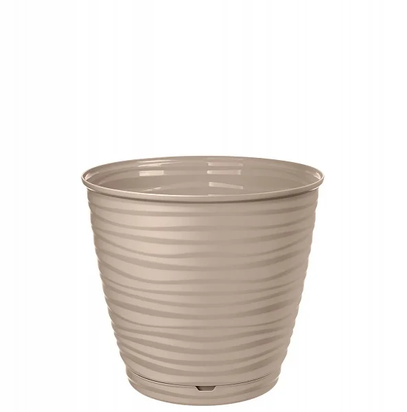 Кашпо пластиковое с поддоном — это декоративный сосуд для выращивания растений и украшения интерьера. Выполнен из прочного пластика, имеет привлекательную рельефную поверхность. В комплект входит подставка (поддон), в которой скапливаются излишки воды