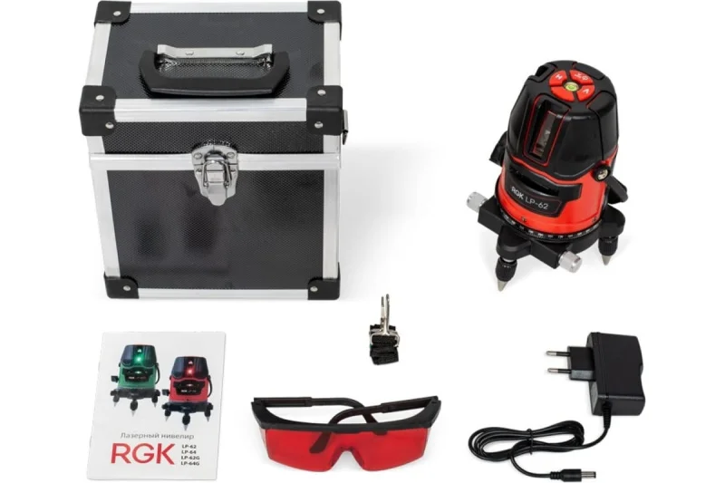 Нивелир лазерный, аккумулятор, зарядное устройство, инструкция, кейс, лазерные очки |