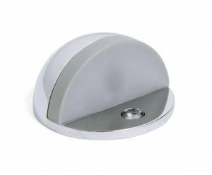 Аккуратный (низкий, диаметром с некрупное яблоко) дверной ограничитель напольного крепления. Подходит для любых межкомнатных дверей и покрытий при условии, что зазор между полом и полотном не превышает 20-22 мм.