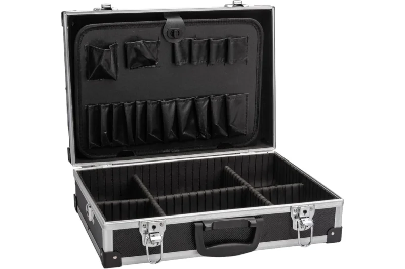 Ящик-чемодан FIT 65630 предназначен для хранения и удобной транспортировки инструментов. Изготовлен из алюминия, а внутренняя отделка выполнена из мягкого пористого материала, что обеспечивает более бережное хранение инструмента. Переставные перегородки позволяют максимально эффективно использовать внутреннее пространство. Чемодан надежно закрывается с помощью металлических защелок. Удобная рукоятка обеспечивает комфортную переноску. Инструментальный ящик применяется как в профессиональной сфере, так и в быту: он очень вместительный, помогает упорядочить нужные в работе предметы и всегда держать их под рукой.
