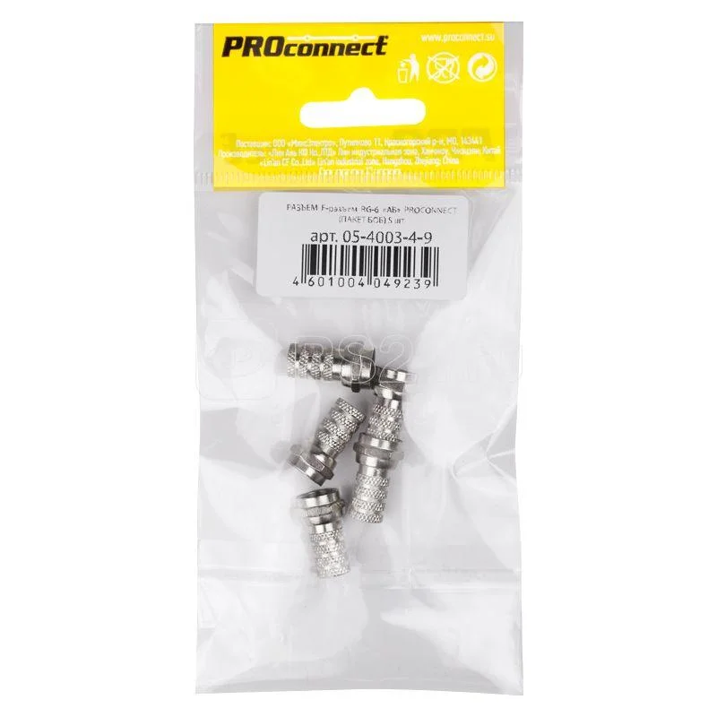 Разъем телекоммуникационный F-соединитель для RG-6 кабеля с длиной 19 мм, предназначен для подключения коаксиального кабеля с волновым сопротивлением 75 Ом к телевизионным и видеоустройствам, таким как ресиверы, телевизоры и различная видеоаппаратура. Он не оснащен встроенным штекером, что позволяет центральной жиле кабеля выполнять функцию штекера, минимизируя потери сигнала.