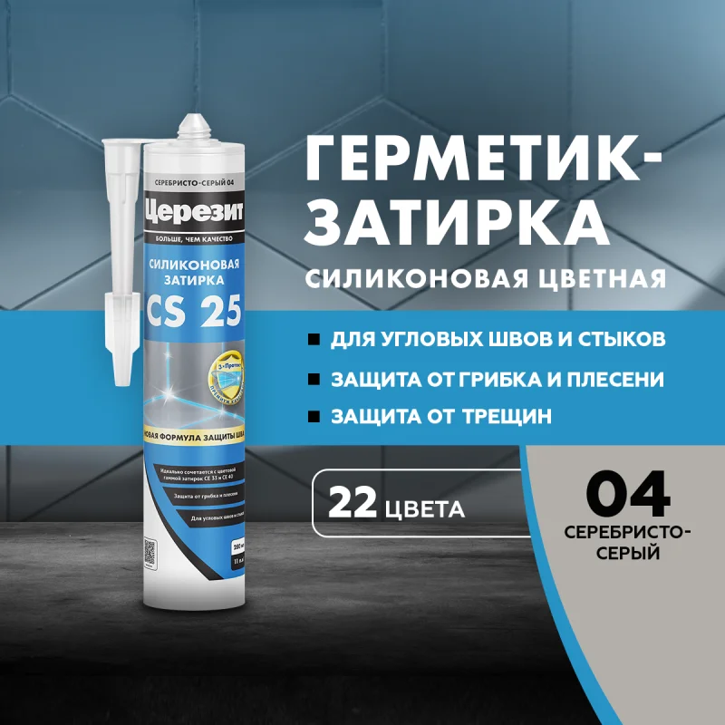 Затирка CS 25 на основе силикона. Применяется в помещениях с нормальным и повышенным влажностным режимом, используется для герметичности швов, отлично справляется в местах примыкания сантехники к стенам.