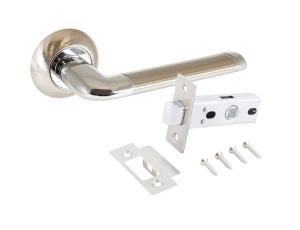 Комплект: ручка на круглой накладке и защелка без фиксации.Материал ручек — алюминиевый сплав, защелки - сталь. Покрытие - полимерная краска. Комплектуются винтовыми стяжками и шурупами. Длина разрезного квадрата - 95мм. Для деревянных дверей, толщиной 35-40 мм.