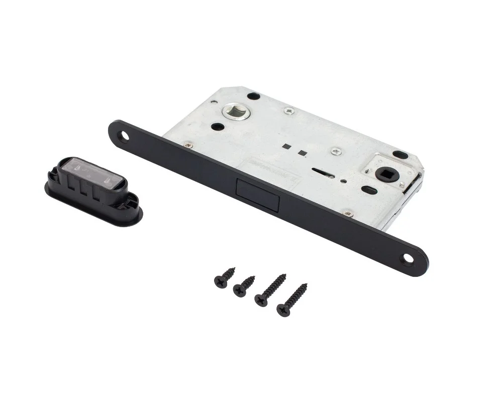 Универсальная магнитная защёлка врезная для установки на деревянные межкомнатные двери. Материал - сталь, гальваническое покрытие.Под ручку с квадратом 8 мм и сантехническую завертку с квадратом 6 мм. Удаление ключевого отверстия - 50 мм. Межосевое расстояние - 96 мм. Овальная торцевая планка для возможности установки с помощью автоматического инструмента. Ширина планки - 18мм. Габариты корпуса - 132х73х15 мм. Засов из ударопрочного пластика.