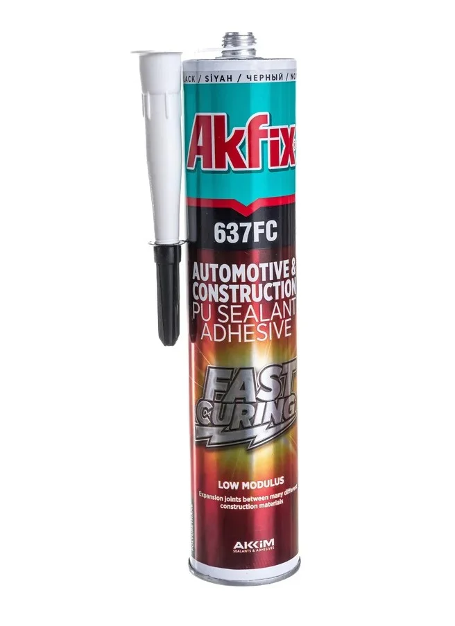 Полиуретановый быстросохнущий герметик Akfix 637FC, черный, 310 мл AA373 - однокомпонентный среднемодульный полиуретановый герметик, быстровулканизирующийся под воздействием влажности воздуха. Обладает превосходными склеивающими свойствами для всех типичных стройматериалов, таких как: бетон, кирпич, керамика, стекло, древесина, оцинкованные и окрашенные листы металла, а также различные виды пластика.