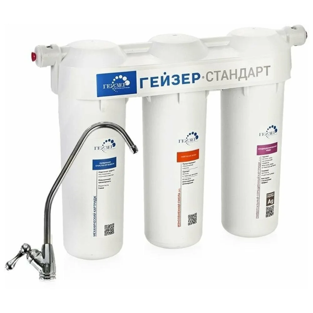 Водоочиститель бытовой Гейзер Стандарт трехступенчатый с краном для жесткой воды 19064 — это наилучшее решение для очистки воды в вашем доме. Разработанный с использованием передовых технологий, этот фильтр обеспечивает высокое качество очистки, удаляя до 99% вредных примесей, таких как хлор, тяжелые металлы, бактерии и вирусы. Благодаря своим компактным размерам, он легко устанавливается под мойкой, не занимая много места и не создавая неудобств.