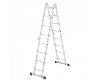 Шарнирная алюминиевая лестница СИБРТЕХ 4х2 97879 может трансформироваться в зависимости от выполняемых работ.