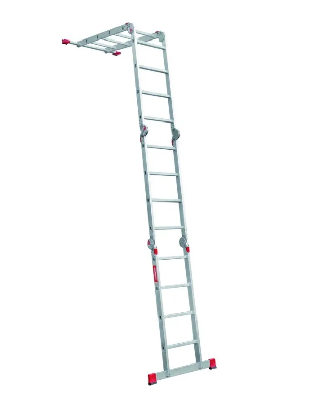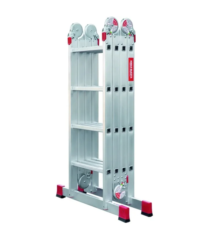 Профессиональная алюминиевая лестница-трансформер Новая Высота NV3320 4x4 ширина 400 мм 3320404 предназначена для профессионального и бытового применения. Использовать такую лестницу можно в виде стремянки, приставной конструкции, помоста и приставной согнутой лестницы.