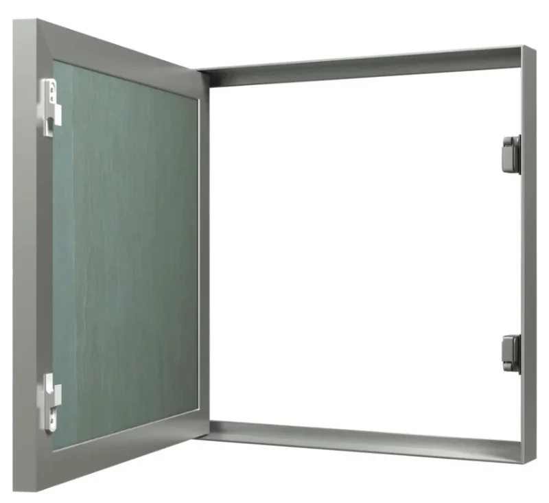 Скрытые ревизионные люки под покраску и обойные покрытия ЛПК предназначены для установки в заранее подготовленный короб из металлического профиля с последующей обшивкой листовым материалом и декорированием. Окрашиваются или оклеиваются под дизайн интерьера. Дверца люка заполнена влагостойким гипсокартоном, открывается и закрывается легким нажатием. Основная рама конструкции и рама панели изготовлены из алюминиевого профиля. Специальный механический замок обеспечивает надежную фиксацию дверцы. Возможно изготовление специальных изделий. ВАЖНО Рама люка крепится к каркасу саморезами с четырех сторон.