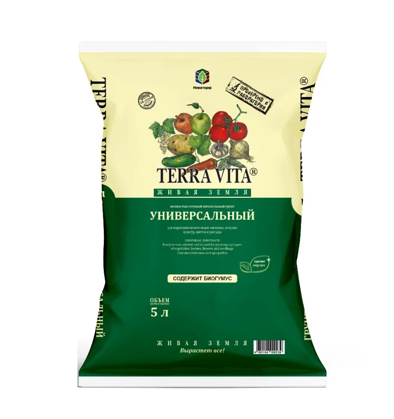 В грунт добавлен агроперлит (белые инертные гранулы) для улучшения воздухо- и влагообмена. Биогумус служит естественным стимулятором роста растений. Комплексное минеральное удобрение содержит необходимый состав макро- и микроэлементов в доступной для растений форме. Песок улучшает структуру почвы.