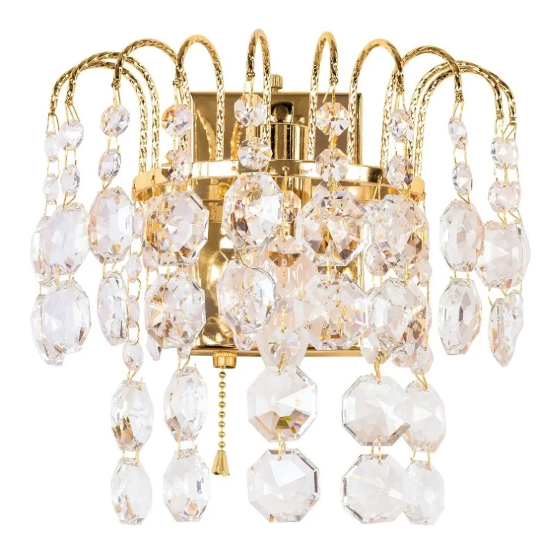 Золотое бра с кристаллами – отличное решение для освещения самых разных пространств. Этот светильник идеально подходит для жилых домов, кафе, ресторанов и гостиниц.