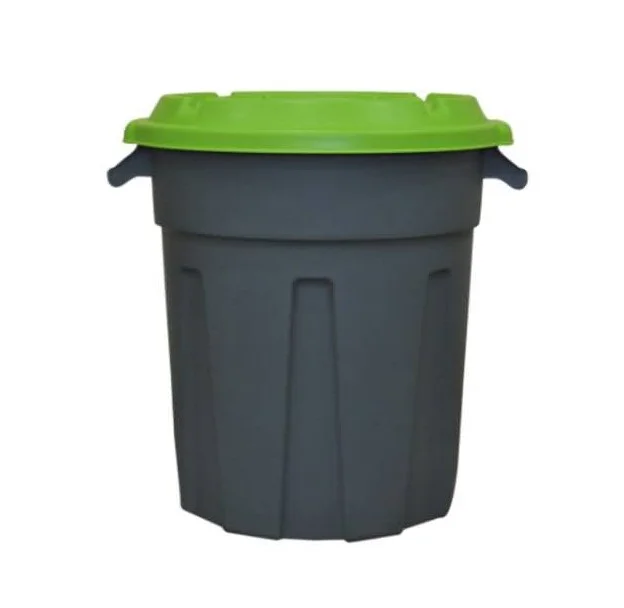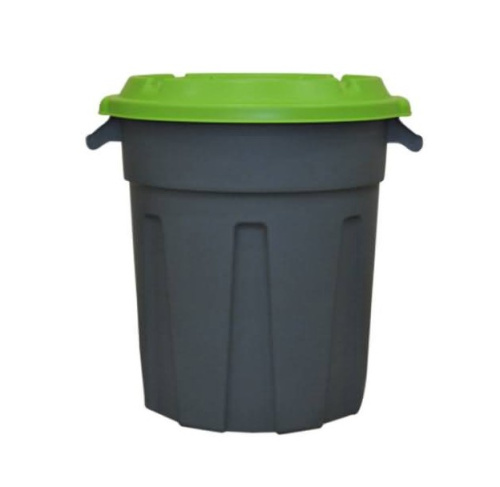 Прочный пластиковый бак объемом 65 литров может использоваться как в помещениях, так и на улице. Благодаря застежкам крышка надежно держится на изделии.