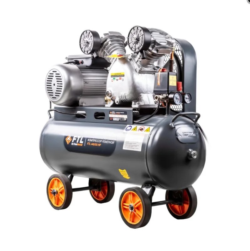FTL 440/50 HP – воздушный двухпоршневой масляный компрессор с ременным приводом, который отличается высокой производительностью в 440 л/мин благодаря использованию компрессорной головки с двумя цилиндрами. Этот компрессор обладает низкой степенью вибраций, меньшим нагревом и уровнем шума благодаря ременному приводу, что гарантирует повышенную надежность и увеличенный срок службы. Данный компрессор может широко применяться как в быту, так и на небольшом производстве, а также в автомастерских. Версия HP характеризуется повышенным рабочим давлением в 10 бар, что позволяет использовать еще больший перечень пневмоинструмента. Оптимальными областями применения являются работы по нанесению лакокрасочных покрытий, грунтов и антикоррозионных материалов. Кроме того, он отлично подходит для работы с шлифовальным пневмоинструментом, гайковертами и другими инструментами, а также для накачки шин, опрессовки и удаления воды из систем водоснабжения и отопления, продувки и очистки от пыли и грязи, пескоструйной обработки поверхностей.