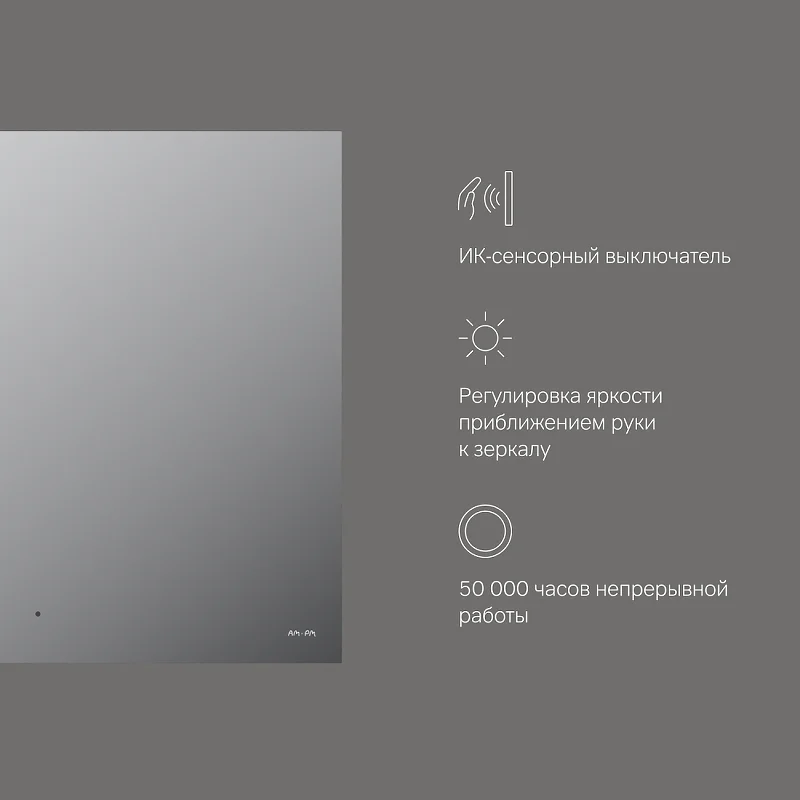 • ИК-сенсор позволяет управлять включением/выключением LED-подсветки без касания зеркального полотна.