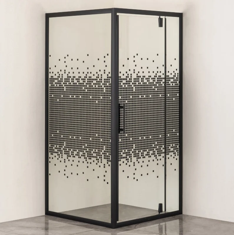 Душевое ограждение "Comforty" 30BM 2000х900х900мм с прозрачным стеклом и рисунком мозаика в черном профиле (артикул 00-00016643) представляет собой воплощение современного дизайна и утонченности.