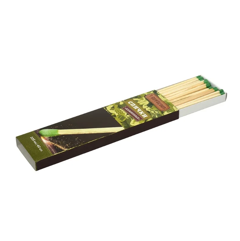 Каминные спички BOYSCOUT 205 мм (40 шт) — идеальный аксессуар для удобного и безопасного разжигания каминов, печей, костров. Длинные спички обеспечивают безопасное и удобное использование, позволяя поддерживать нужное расстояние от огня. Упаковка из 40 спичек обеспечит вас запасом на долгое время.