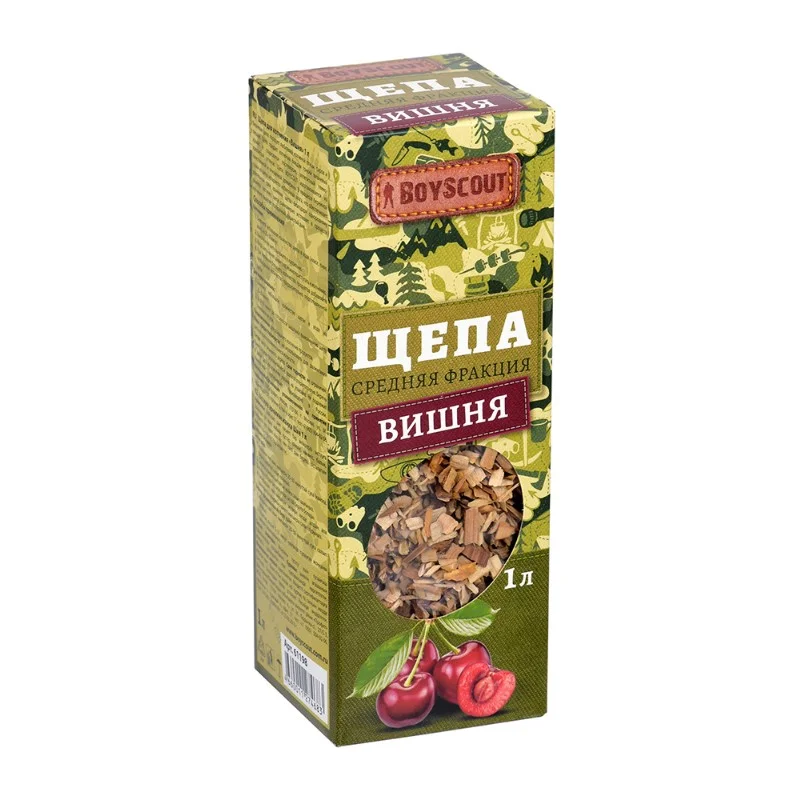 Щепа для копчения Вишня от BOYSCOUT — отличный выбор для тех, кто ценит изысканный вкус и аромат. В упаковке объемом 1 литр содержится натуральная вишневая щепа, которая придает продуктам насыщенный и слегка сладковатый дымный аромат. Идеально подходит для копчения мяса, рыбы, сыра и других деликатесов. Вишневое дерево создает особую атмосферу, делая блюда еще более аппетитными и ароматными. Щепа легко воспламеняется и долго сохраняет дымность, что гарантирует великолепный результат. Сделайте ваше приготовление пищи на открытом воздухе незабываемым с вишневой щепой BOYSCOUT!