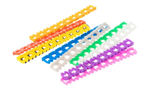 Эти маркеры выполнены из гибкого и негорючего поливинилхлорида. Температурные условия их использования не должны превышать 85 °C. Специальная эластичная конструкция позволяет каждому маркеру прочно удерживаться на проводах диаметром от 4 до 6 мм. Также предусмотрено отверстие для провода.