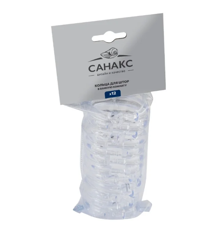 Набор колец для штор из пластика прозрачные с системой открывания CLICK (упак. 12 шт) 75007 от Санакс — это превосходное решение для ванной комнаты, сочетающее в себе практичность и эстетическую привлекательность.