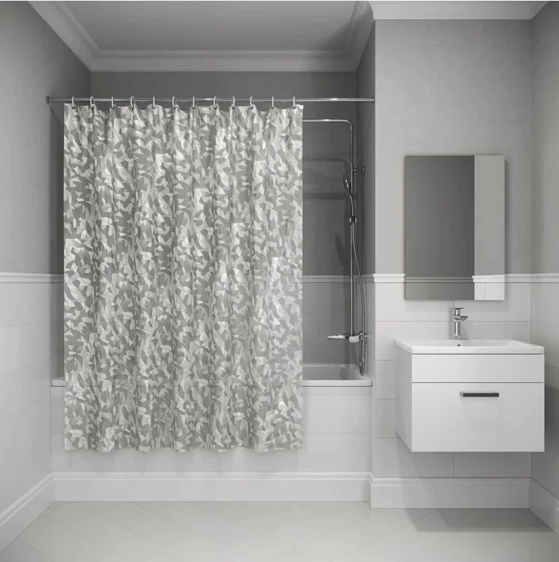 За шторой легко ухаживать: достаточно протереть мыльной тряпкой и промыть душем, не снимая с карниза.