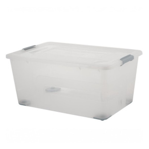 Универсальный ящик для хранения BERGEN 40л подходит для хранения разнообразных мелочей в доме (рукоделия, проводов, детских мелких игрушек и канцелярии), а также для перевозки вещей при переезде. Прозрачный корпус и крышка позволяют видеть содержимое, что удобно для хранения в закрытых гардеробных. Ящики прекрасно штабелируются и устойчиво держатся друг на друге благодаря специальной форме крышки и дна. Надежный и практичный благодаря толстым стенкам. Защищает от загрязнения и пыли содержимое благодаря крышке. Изготовлен из эко-пластика и подходит для контакта с пищей. Надежные замки-защелки позволяют сохранить содержимое ящика. Удобные колесики на дне позволяют легко перемещать ящик. Можно сменить положение колесиков, чтобы ящик двигался либо по его длинной стороне, либо по короткой для удобства помещения его под кровать, в шкаф и т.д.