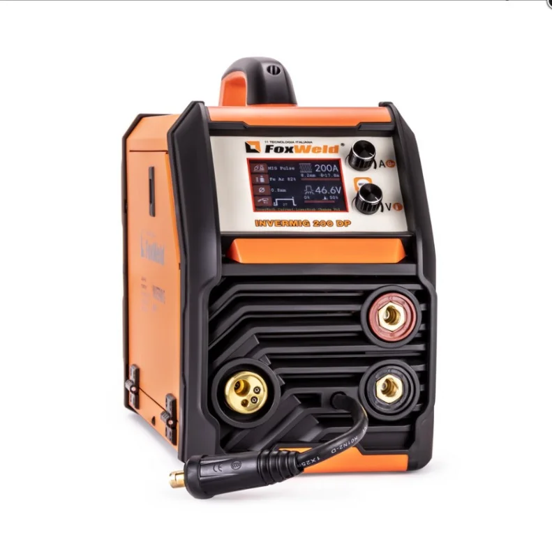 Сварочный инверторный полуавтомат FOXWELD INVERMIG 200 DP с синергетическим управлением предназначен для сварки проволокой MIG/MAG в импульсном и обычном режимах, а также может работать в режимах аргонодуговой сварки TIG и ручной сварки ММА. INVERMIG 200 DP - многофункциональный сварочный аппарат с двойным импульсом, высокой продолжительностью нагрузки, в нём предусмотрены выбор и сохранение программ и различные режимы управления горелкой. Конструкция аппарата имеет 2-роликовый полноприводный механизм подачи проволоки, интеллектуальную систему вентиляции, информативный жидкокристаллический дисплей.