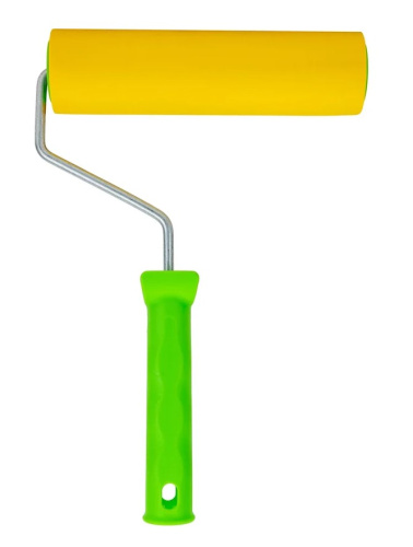 Резиновый прижимной валик Сибртех 81034, 180 мм, с ручкой диаметром 6 мм, используется для ремонтно-строительных работ. Он подходит для наклеивания всех видов обоев, а также других тонких листовых материалов. Валик позволяет быстро и равномерно разгладить полотно на стыках и удалить пузырьки воздуха.